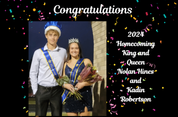 Congratulations to the newly crowned 2024 Homecoming King and Queen Nolan Hines and Kadin Robertson!